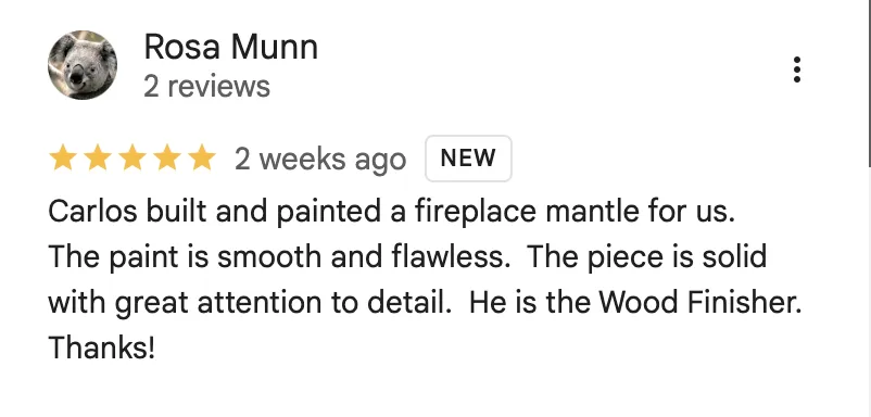 I started my wood finishing business in 2005 and haven't looked back. I take pride in doing a good job for my clients and seeing them enjoy the end result!